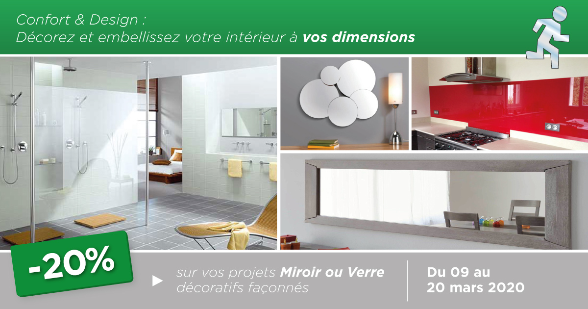 -20% sur vos projets « Miroir ou Verre décoratifs façonnés » – du 9 au 20 Mars