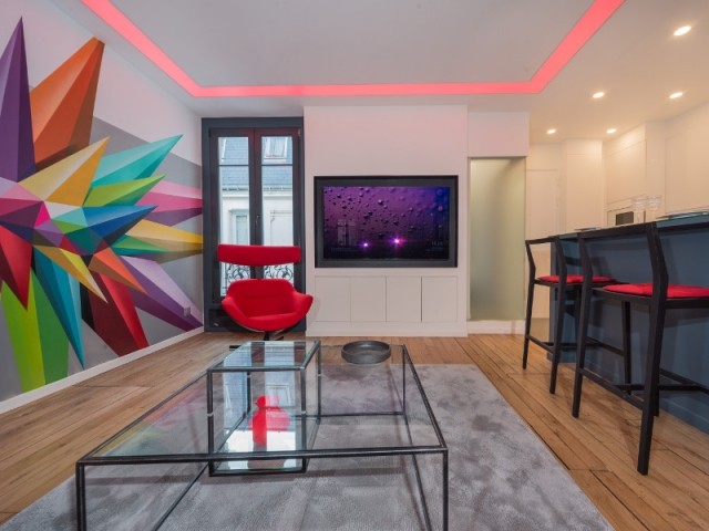SOURCE : Pour lire l’article complet par Rouba Naaman-Beauvais, le 20 décembre 2018. Entièrement réhabilité pour y apporter plus de lumière, ce trois-pièces parisien a également prêté l'un de ses murs au célèbre street artist Okuda. Une fresque XXL multicolore vient aujourd'hui donner un nouveau souffle à l'appartement. Une fresque sur l'un des murs du salon. Une mise en couleurs unique en son genre qui trouve écho dans un faux plafond éclairant... Visite en images. [foogallery id="12027"]