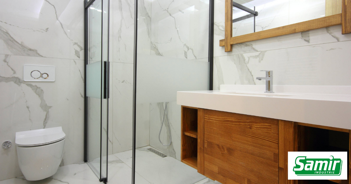 Optimisez la surface de votre espace douche avec les panneaux et portes sur mesure de SAMIR martinique - En verre spécifiquement traité, avec accessoires inox adaptés.