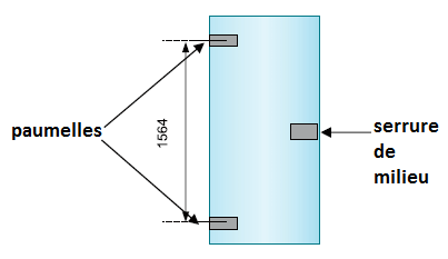 - Serrure centrale avec poignée et paumelles chromées ou mat